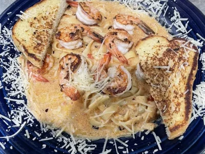Fettucine noodles prepared with our hot and spicy red sauce topped with parmesan cheese and choice of chicken or shrimps.